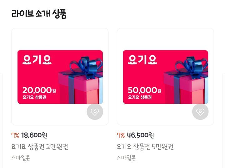 요기요 상품권 2종 (2만원권/5만원권)