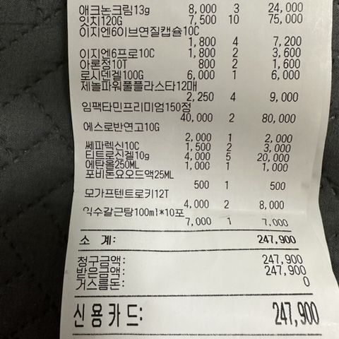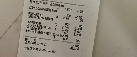 영수증 이건 새 발의 피.. 한 번 가면 친구들 거랑 가족들 거 다 사옴 ㅋ
