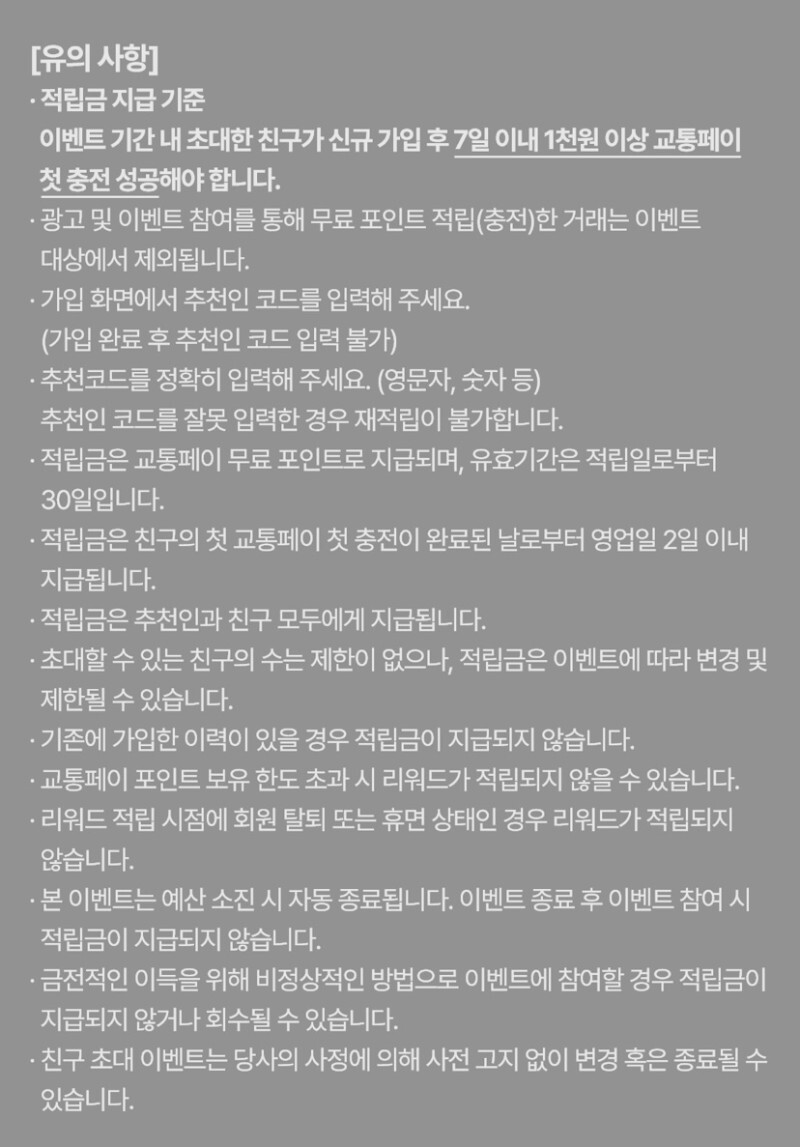 작성자개추워크래용 작성시간 22.12.09 이거 그럼 교통카드로 충전하녀 2프로 수수료 할인해 주던데 그걸로 충전하면 안 된단 거지??? 상세페이지엔 따로 말 없긴 하던데