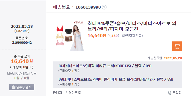 그냥 일반 브라보면 등 둘레가 좀 작게 나와서 불편하더라고. 근데 비너스는 딱 맞게 나온거같아.