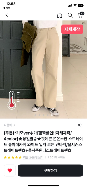 베이지색 바지는 기모는 적당~한데 핏이 개미친놈......