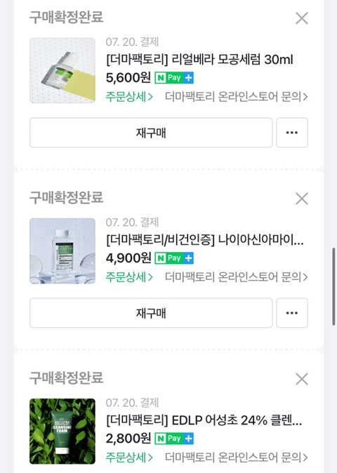 짱 많지..? 이번 여름에 마스크로 인한 접촉성피부염으로 얼굴 피부가 완전히 뒤집어졌어. 그것도 입 주변만 싹!! 기초화장품을 바꿔볼까 하고 서칭 끝에 더마팩토리가 좋다길래 아예 싹 바꿔봤는데 이게 웬걸.. 나한테는 안 맞았던 거임.. 전보다 피부가 더 심각해짐ㅠㅠ 그냥 뭐가 나는 수준이 아니라 빨갛게 딱지가 앉을 정도로.. 특히 나이아신마이드 토너를 바를 때마다 자극이 너무 심하게 느껴지더라고. 결국 클렌징폼만 좀 꾸준히 쓰고 나머지는 다 창고에 쳐박아둠. 여시들도 배송비 좀 아낀다고 한 번에 다 사지 말고 조금만 사서 테스트 해보고 사.. 안 맞을 수도 있으니까..