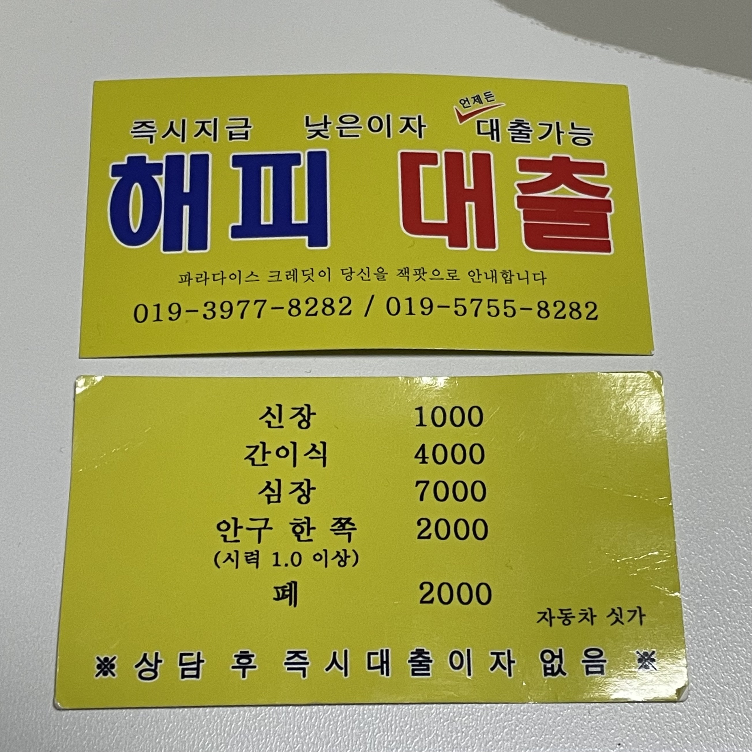 처음 들어가면 대출권유하는 사람이 돌아다니면서 사람들한테 이걸 슬쩍 건내줌
