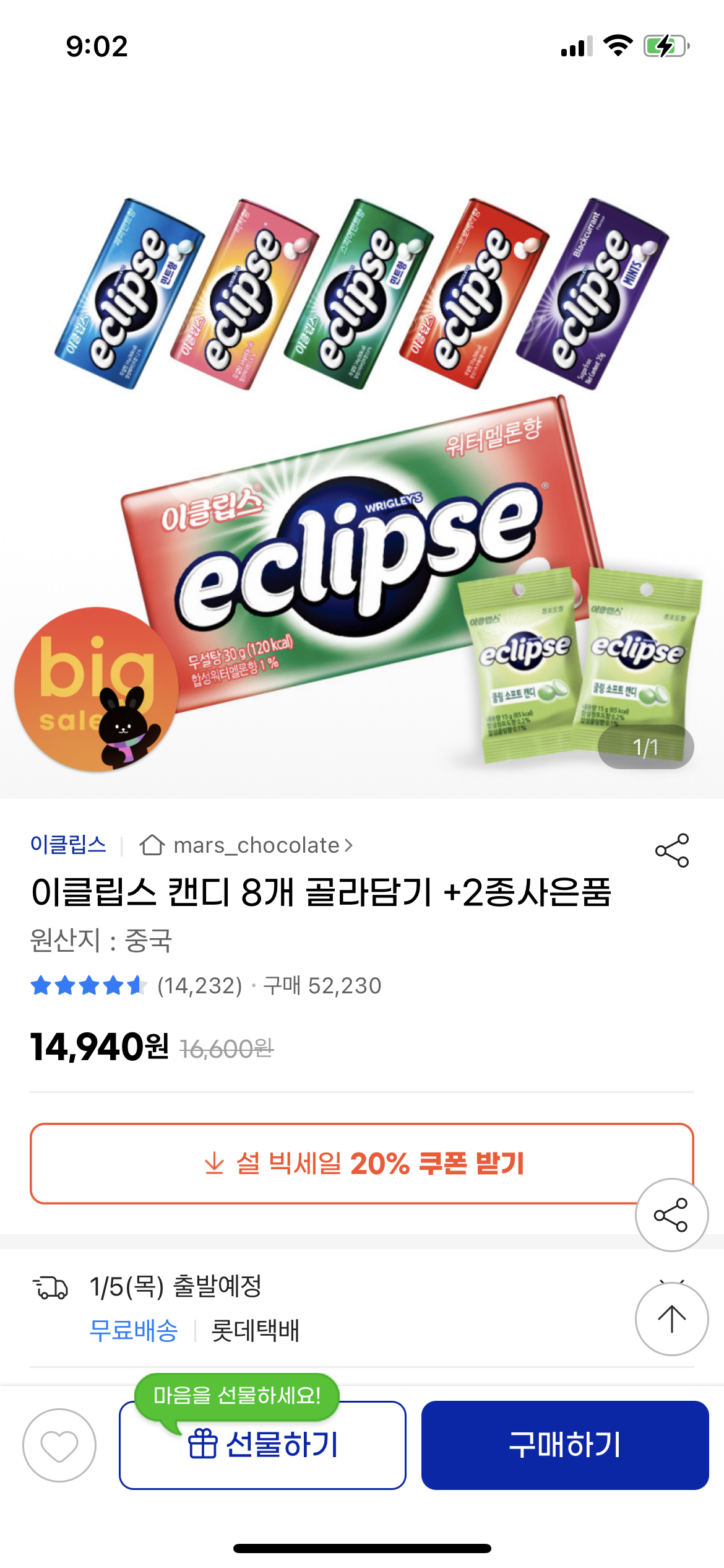 G마켓[이클립스 캔디 8개 골라담기 +2종사은품] https://mobile.gmarket.co.kr/AppGate/V3?link=http%3A%2F%2Fmitem.gmarket.co.kr%2FItem%3FgoodsCode%3D1707731465%26p6dl%3Dmappshare&app=gmkt&preview=false