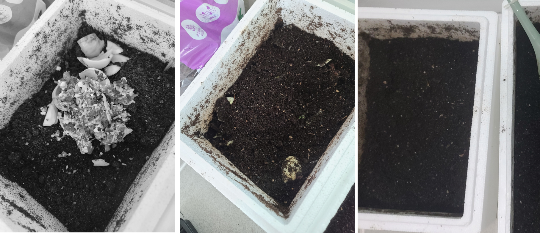 흙만 넣었는데도 분해되는게 신기ㅎㅎ