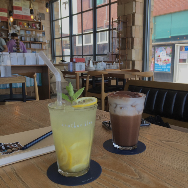 루프탑있고 사람 많이 없음. 실내 아기자기하고 건물 앞 주차칸에 카페 사장님 소유로 보이는 오토바이가 있어 창 밖을 찍어도 못생긴 차로 뷰가 망쳐지지 않는 다는 것이 장점이라면 장점