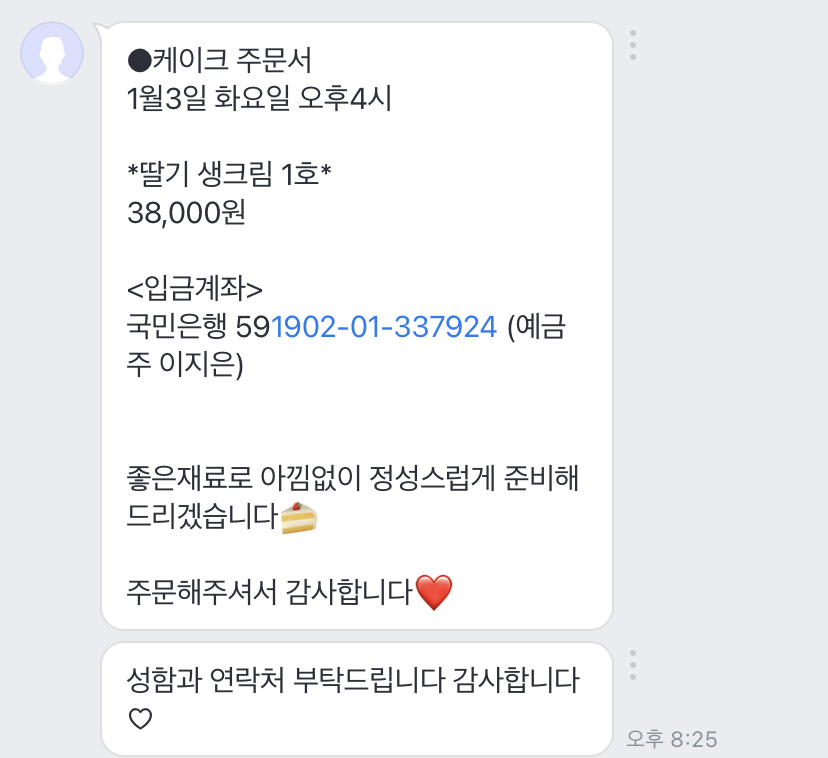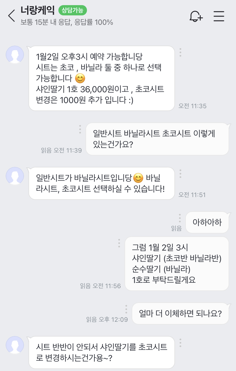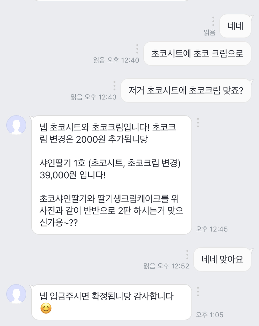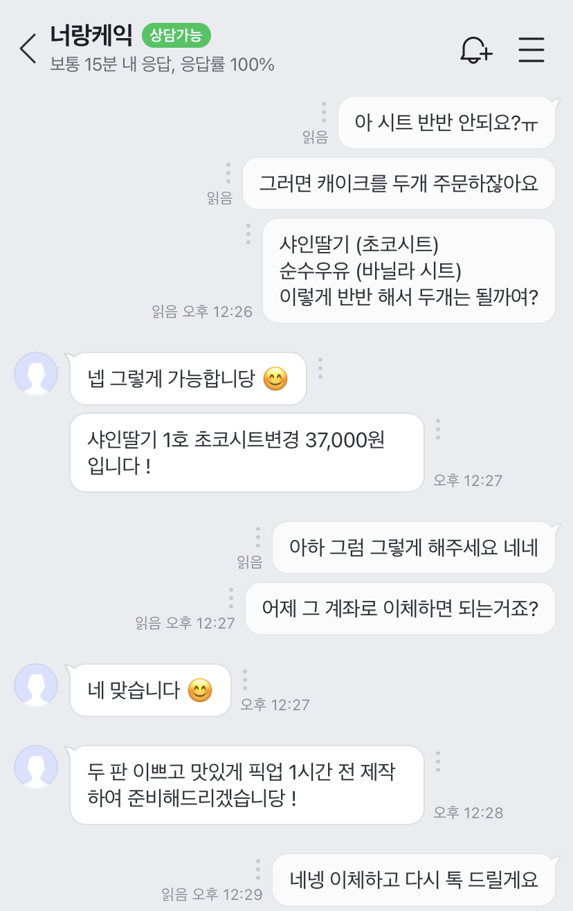 처음엔 케이크 1판만 주문했다가 2일 3일 이틀 연속 약속이 잡히고 또 지인이 초코 케이크도 먹어보고 싶다고 해서 시트랑 픽업 날짜 변경하고 두 판 주문함