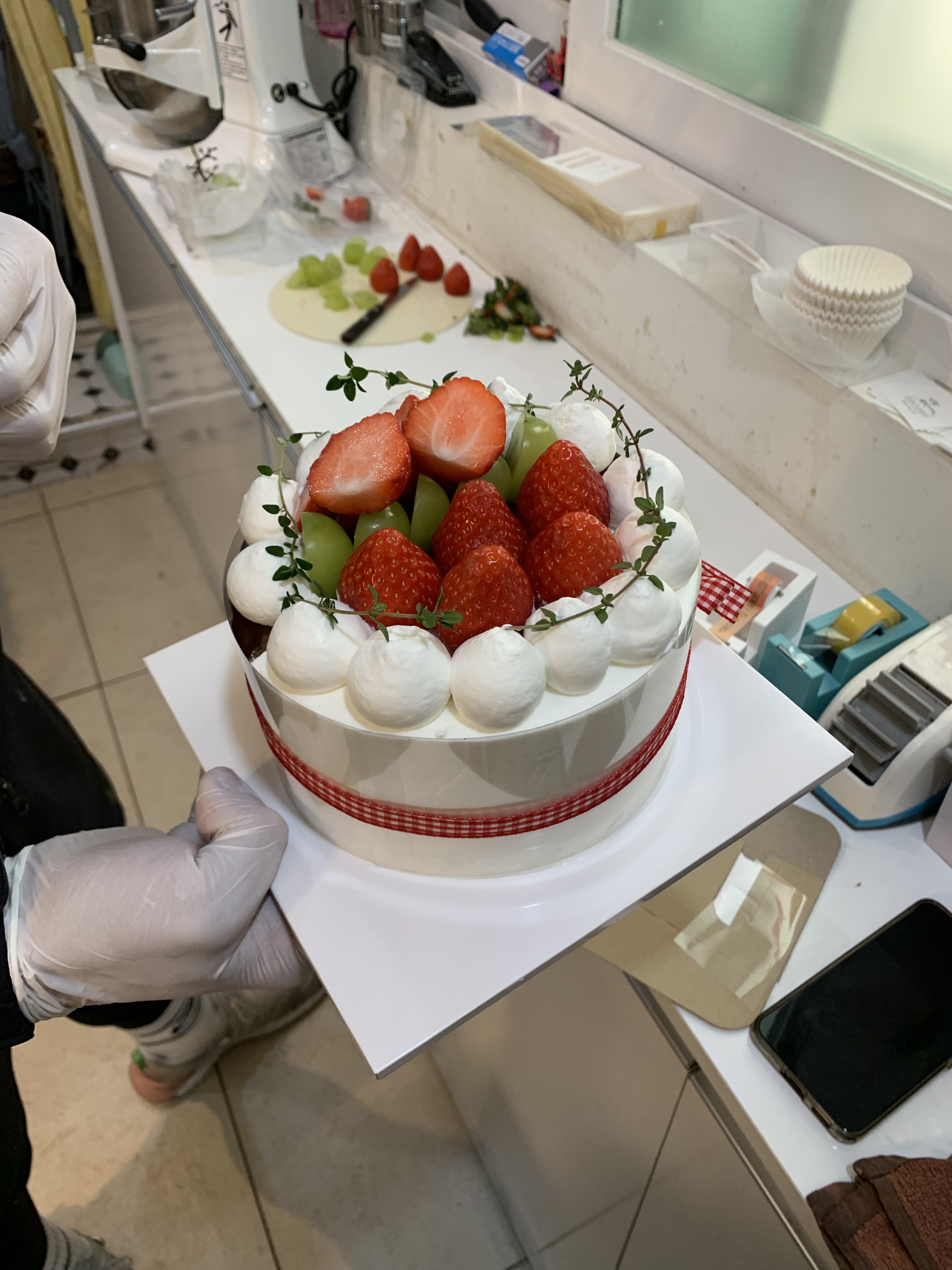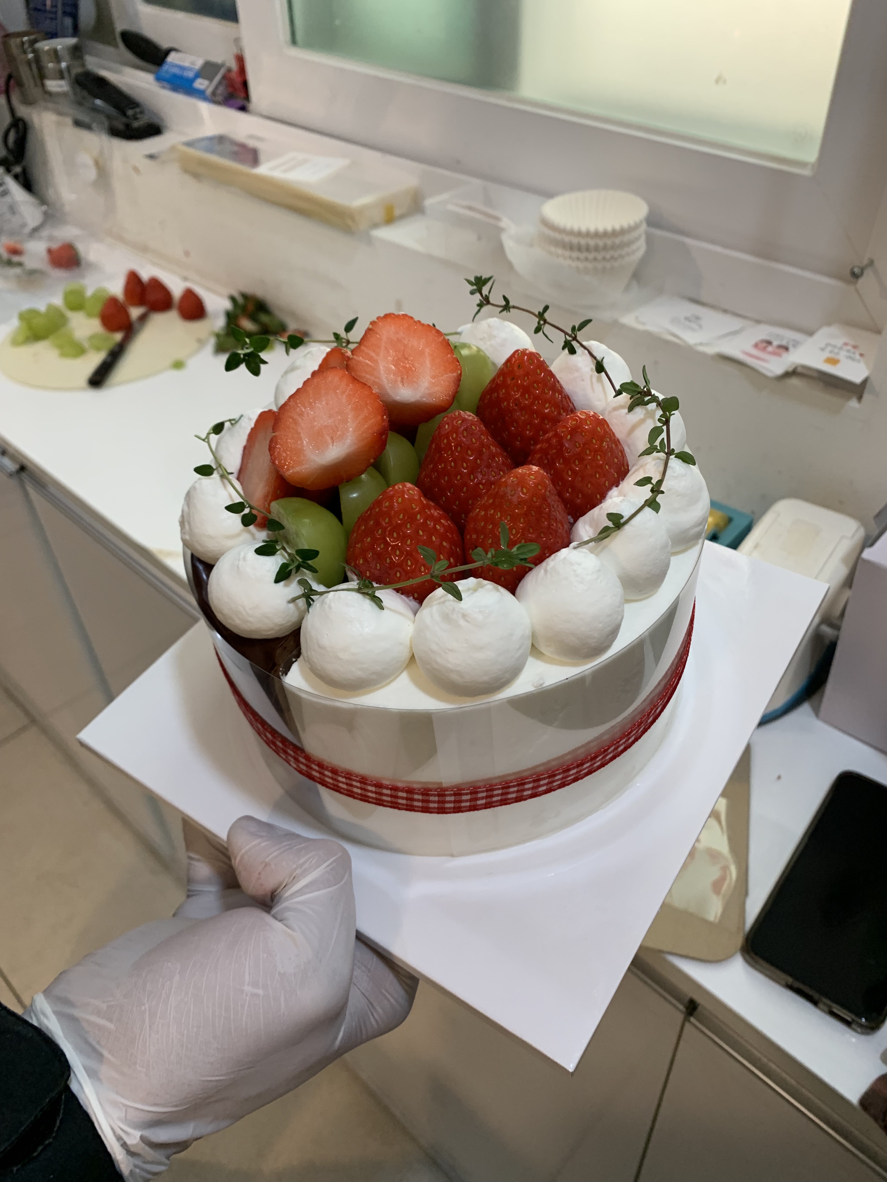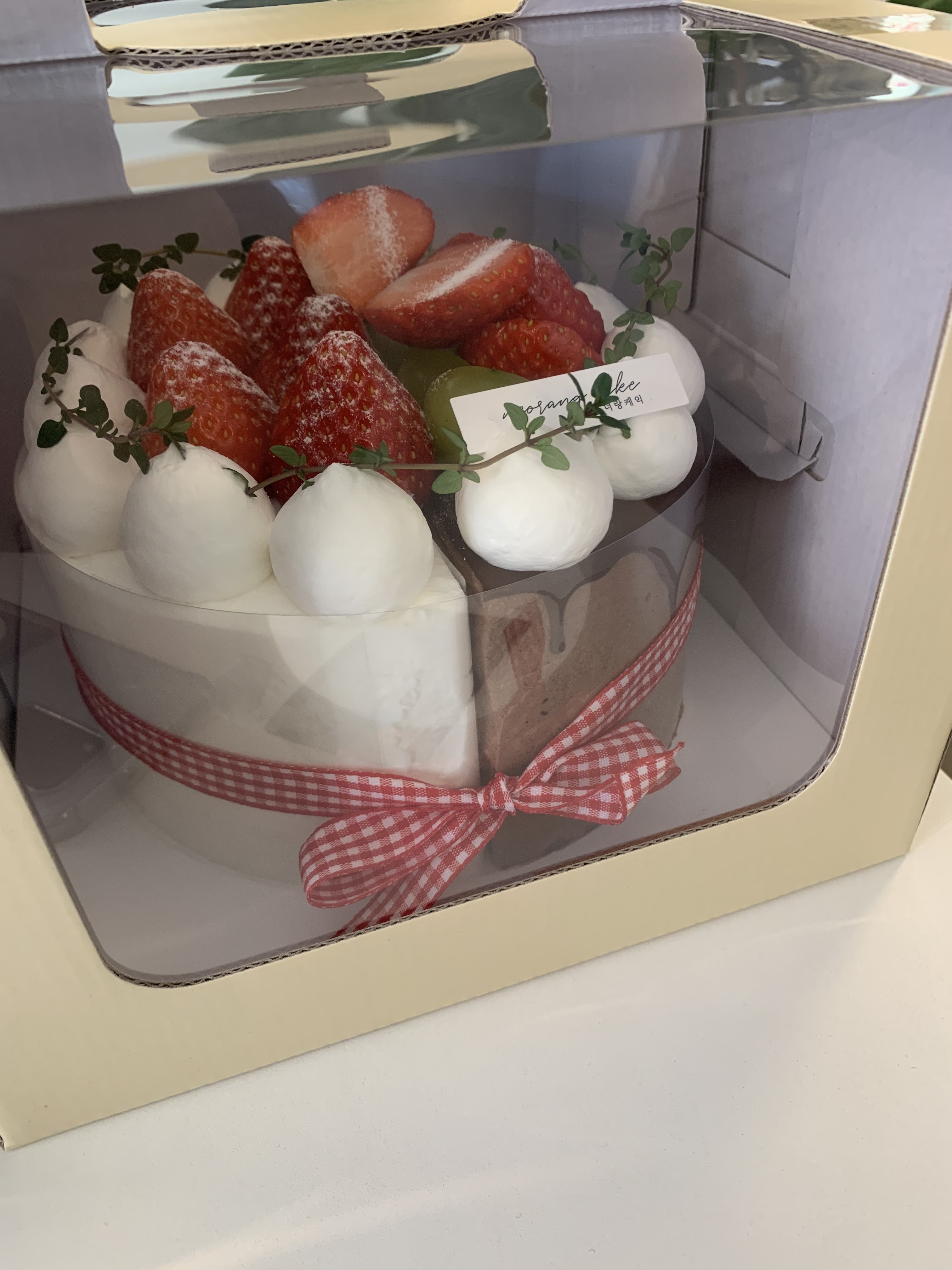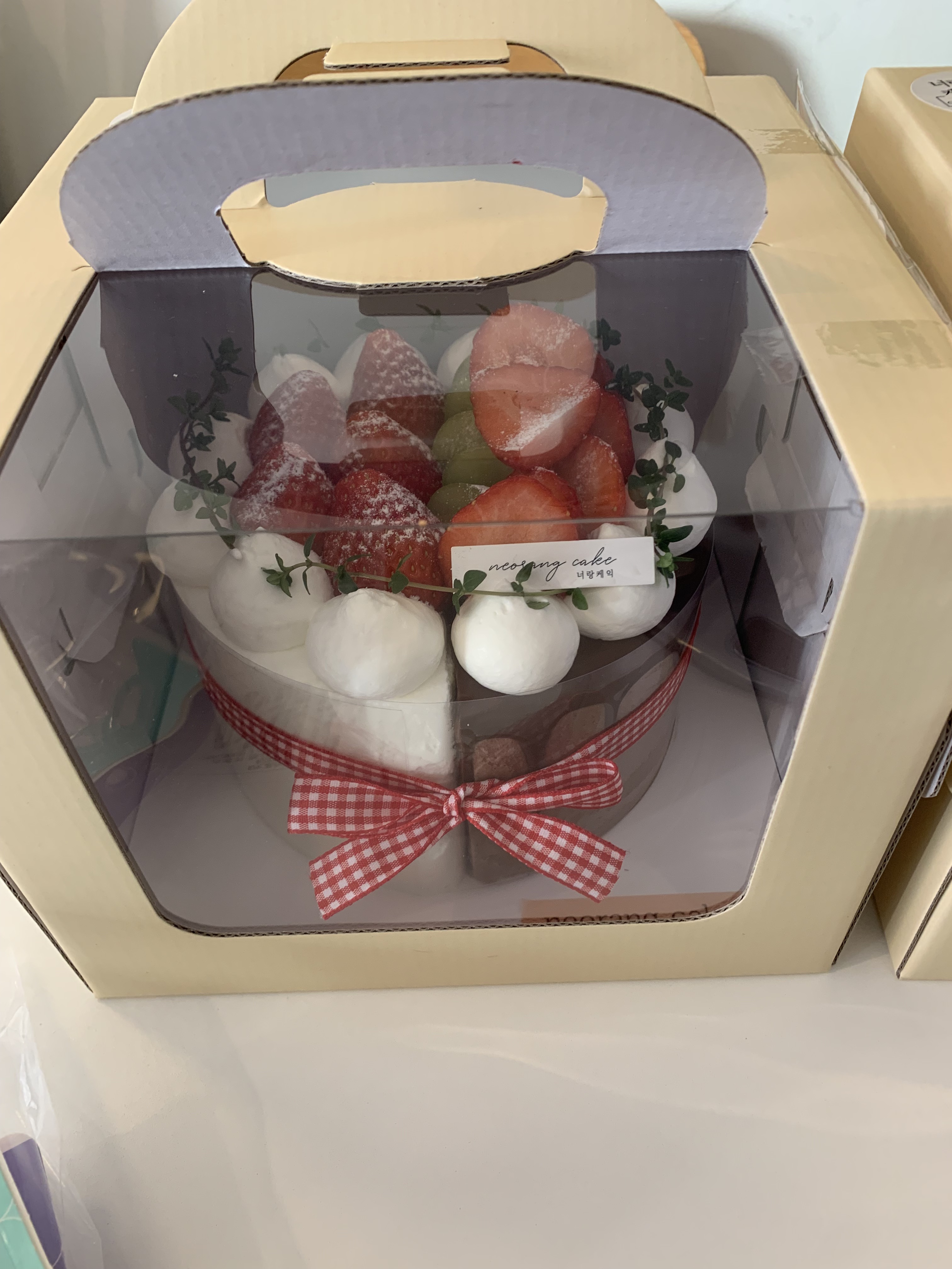 완성본이 너무 귀엽더라 리본도 묶어주시고 또 케이크 상자도 귀여웠음