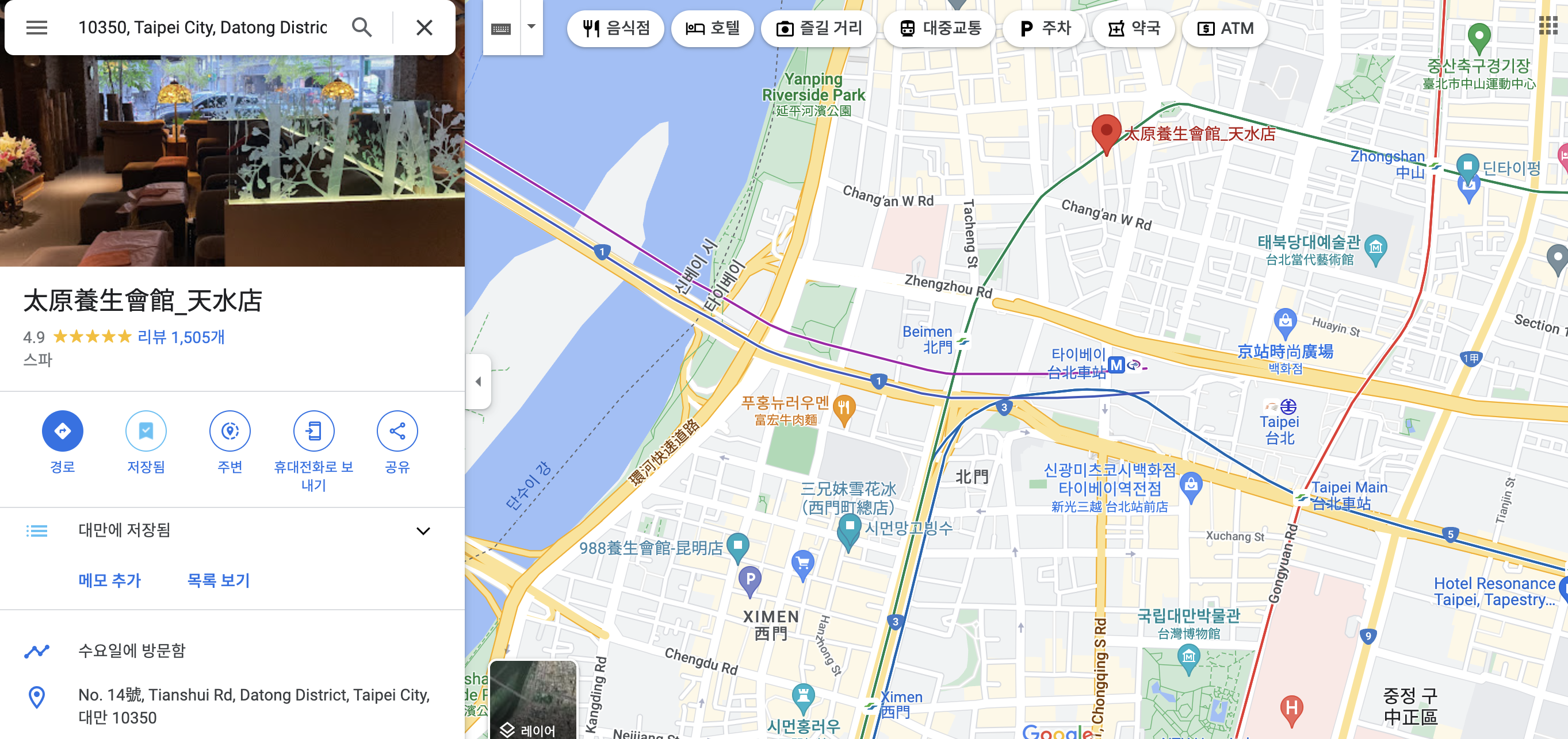 2-2. 2일차 : 임가화원 - (스타벅스) - 용산사 - 일갑자손음 - 마사지 - 키키레스토랑 성품서점 신이점 - 타이베이101