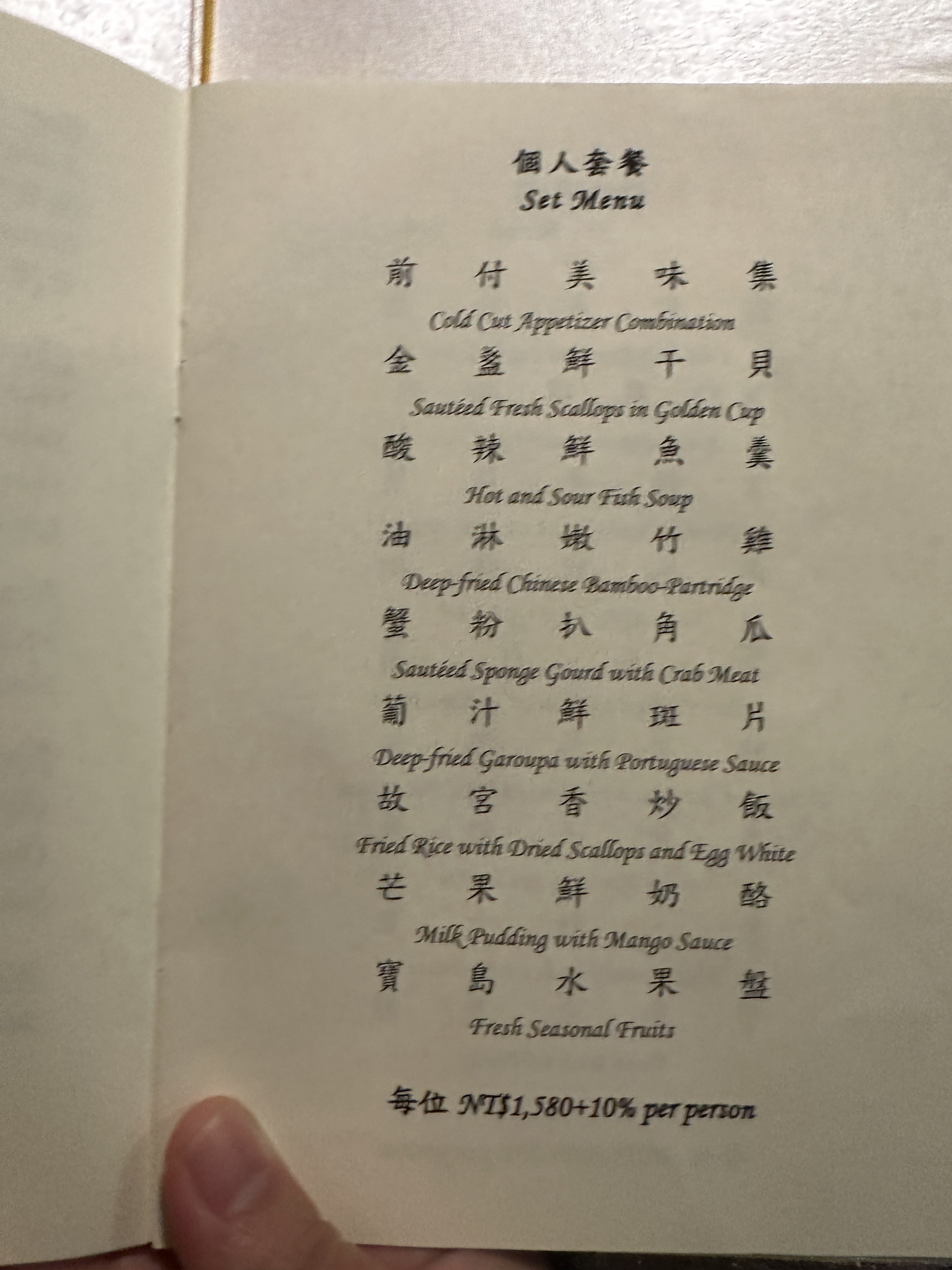 2. 가장 싼 세트메뉴가 1500타이완달러. vat별도