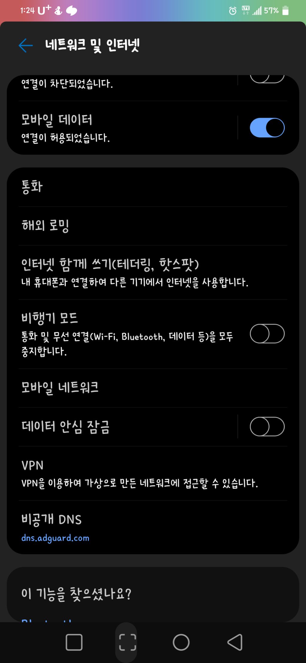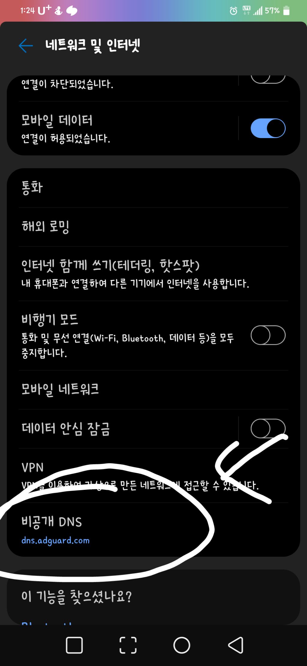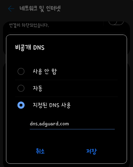 안드로이드 설정에 들어가서 비공개 DNS 검색