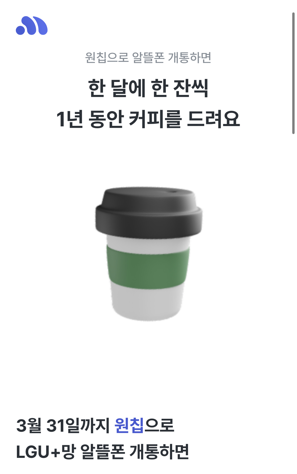 -> 모두의 유심칩으로 가입하면 매월 커피 쿠폰 1년간 준대 메가/스벅/메가/스벅 격달로 !!