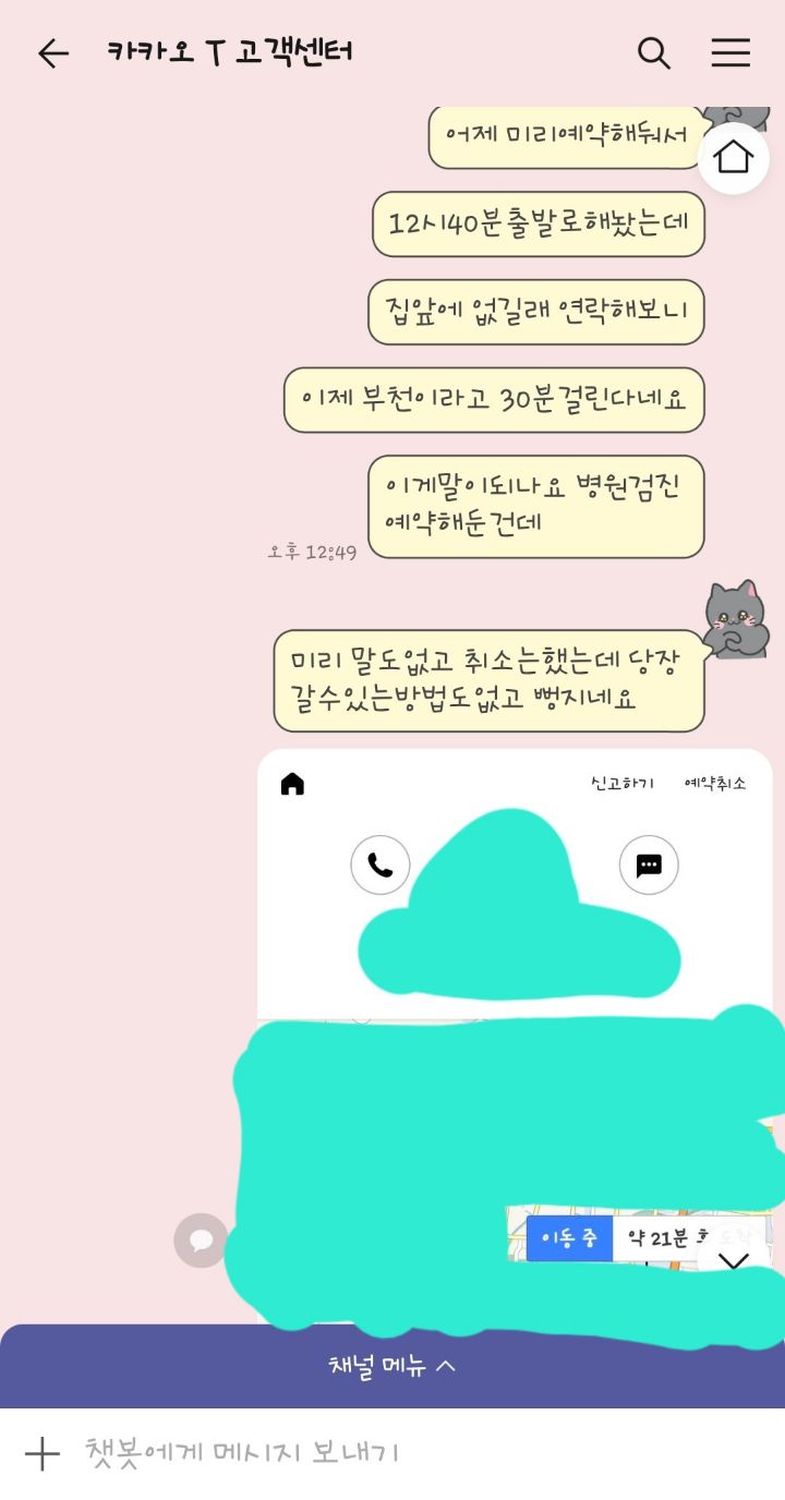 결국 다시 전화해서 취소해달라고 하고 당장 병원가야되는데 이렇게 늦으시면 어떡하냐,
