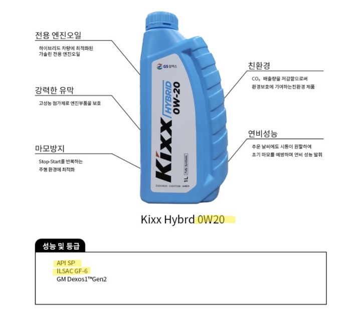 우리가 봐야할건 저 SAE 0W-20 / API sn+ or sp이거임.