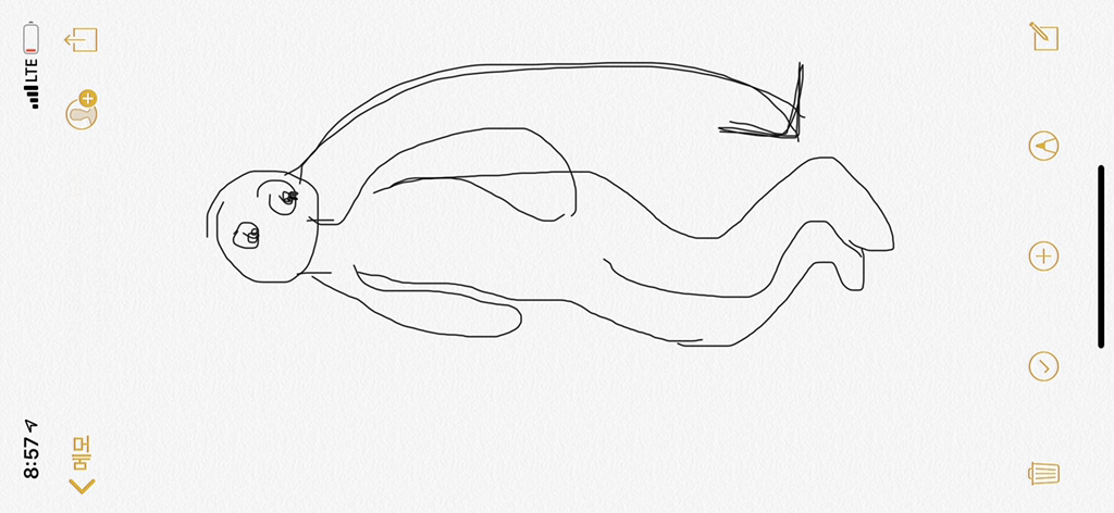 그상태로 고개만 들어서 발쪽을 쳐다봐줘!