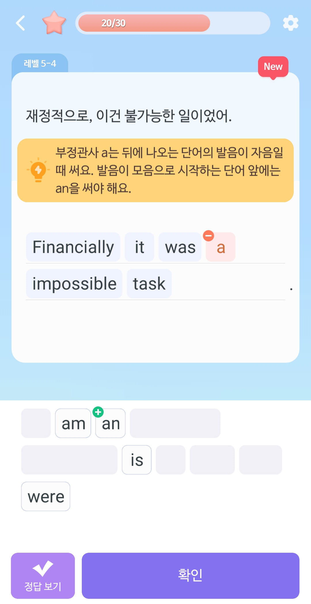 한글 문장을 보고 바로 단어를 맞추는 게 아니라, 입으로 문장을 완성한 후 단어를 맞춰.