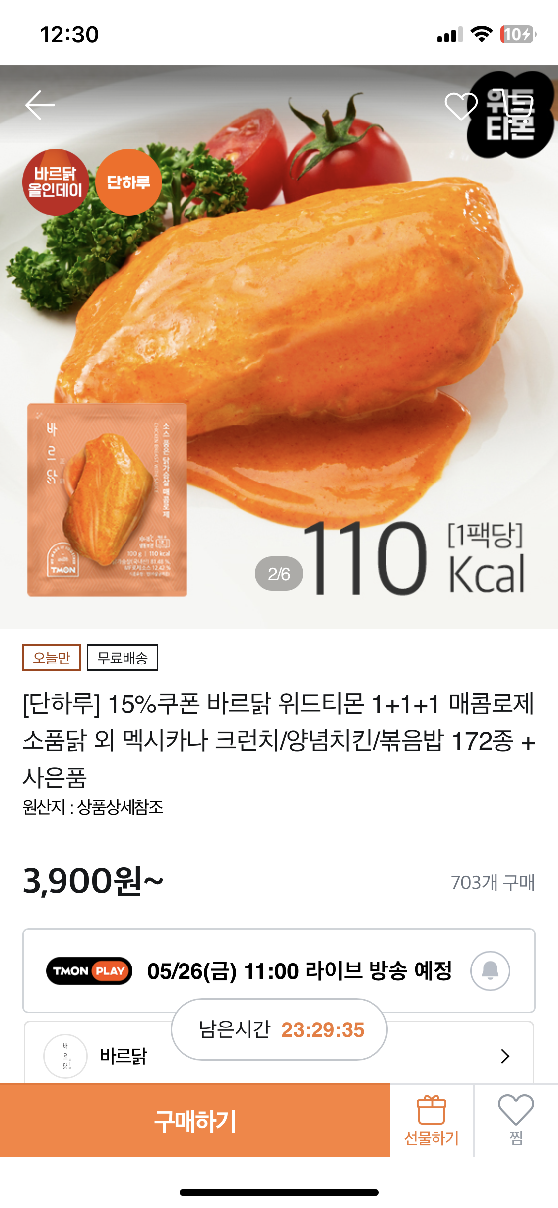 [티몬] [단하루] 15%쿠폰 바르닭 위드티몬 1+1+1 매콤로제 소품닭 외 멕시카나 크런치/양념치킨/볶음밥 172종 + 사은품
