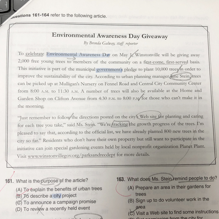 다시 말하지만 난 사회성이 재기한 방구석 여포임. 그래서 글의 목적 묻는 문제를 잘 틀림. government의 환경 어쩌구저쩌구의 날이 나왔으니 이건 도시 계획 설명이 목표임. 팟7도 오답할 때 정답의 힌트가 되는 부분만 형광펜 침. 이게 오답의 끝임. 팟7 오답은 해석만 천천히 하면 금방임. 이래도 오답 효과가 있는 게, 지문에 답 힌트가 있단 걸 아니까 다음에 문제 풀땐 키워드에 밑줄 치거나 동그라미 쳐 가면서 읽게 됨. 그러면 문제 풀 때 빨리 빨리 지문에서 키워드 가져와서 풀 수 있게 됨.