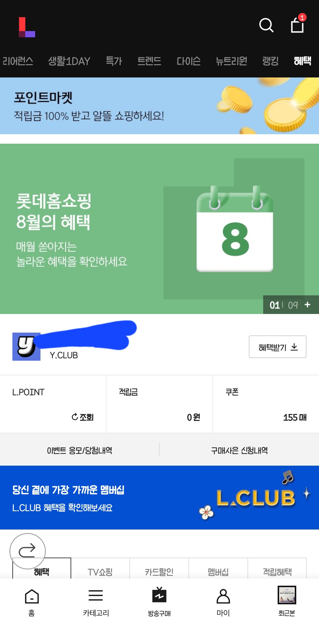 3. 롯데홈쇼핑 혜택 들어가서 와이클럽 가입해서 와이클럽 회비는 5만원!!