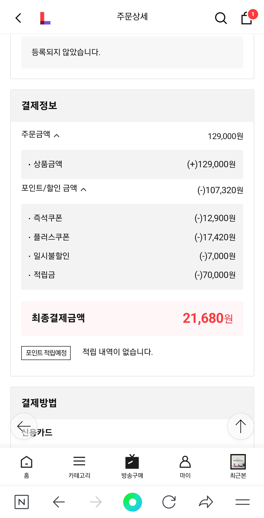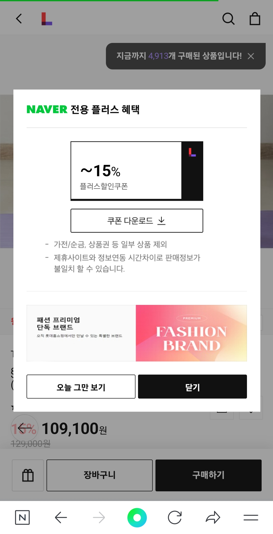 * 네이버 에 롯데홈쇼핑쳐셔 아무상품클릭해서 쿠폰먼저받앙