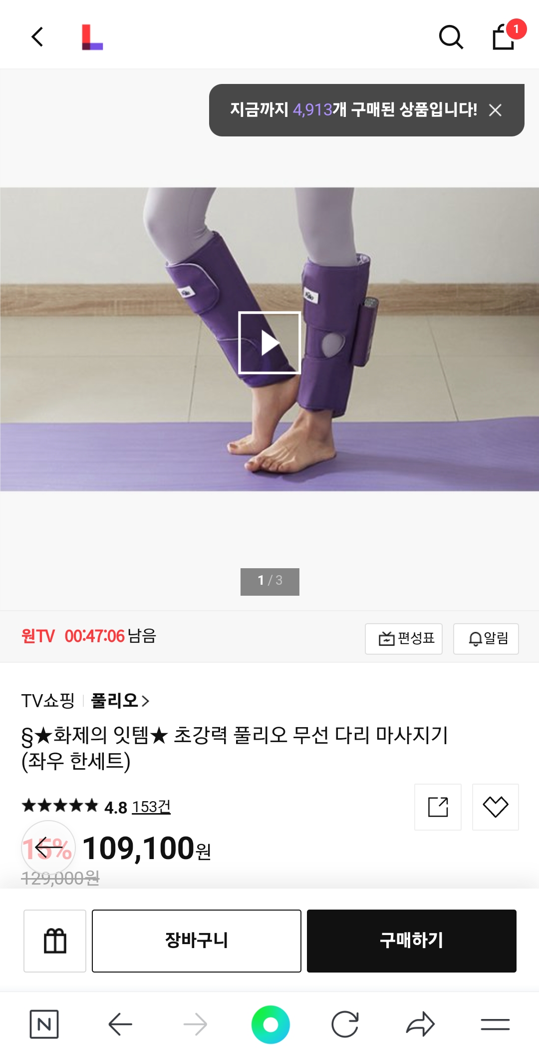 1. 네이버에 롯데홈쇼핑 풀리오 마사지기