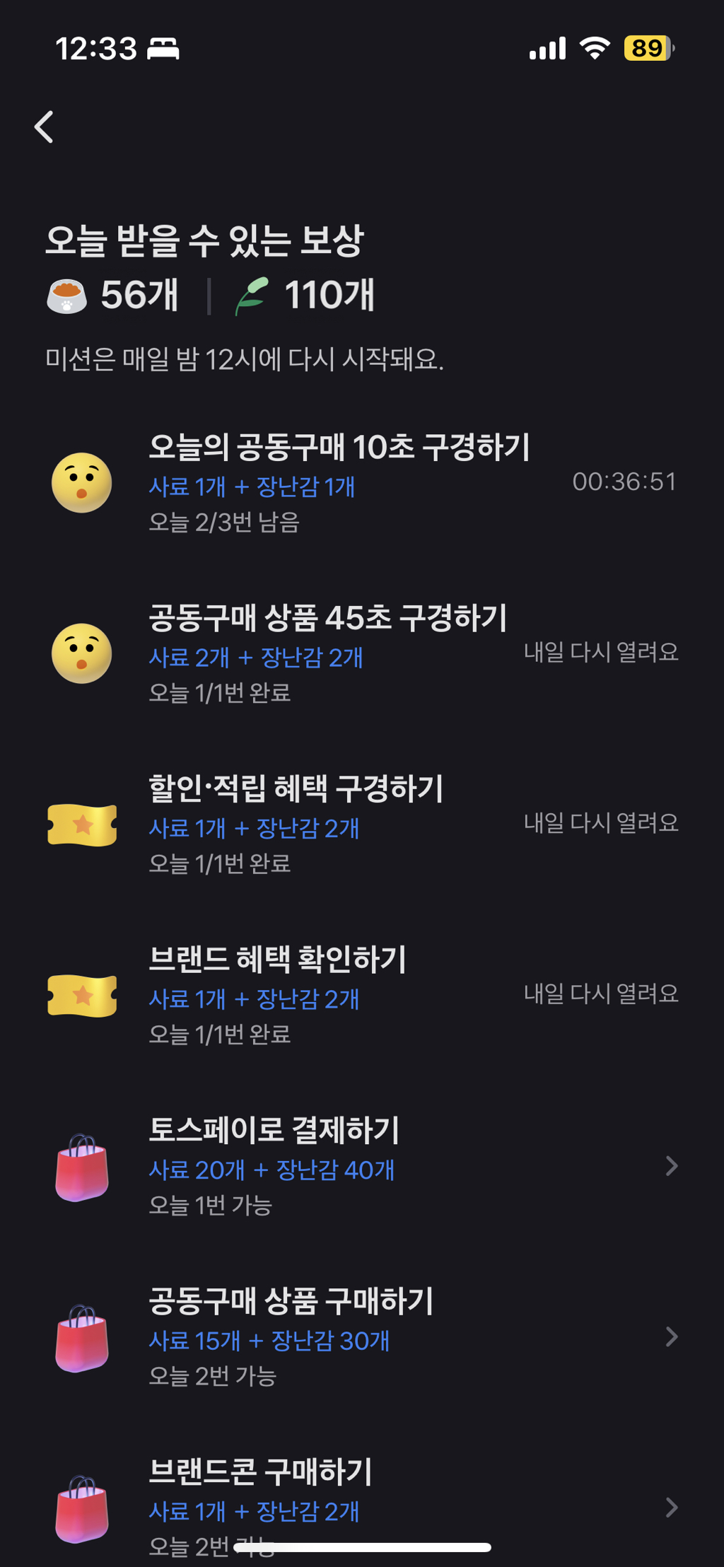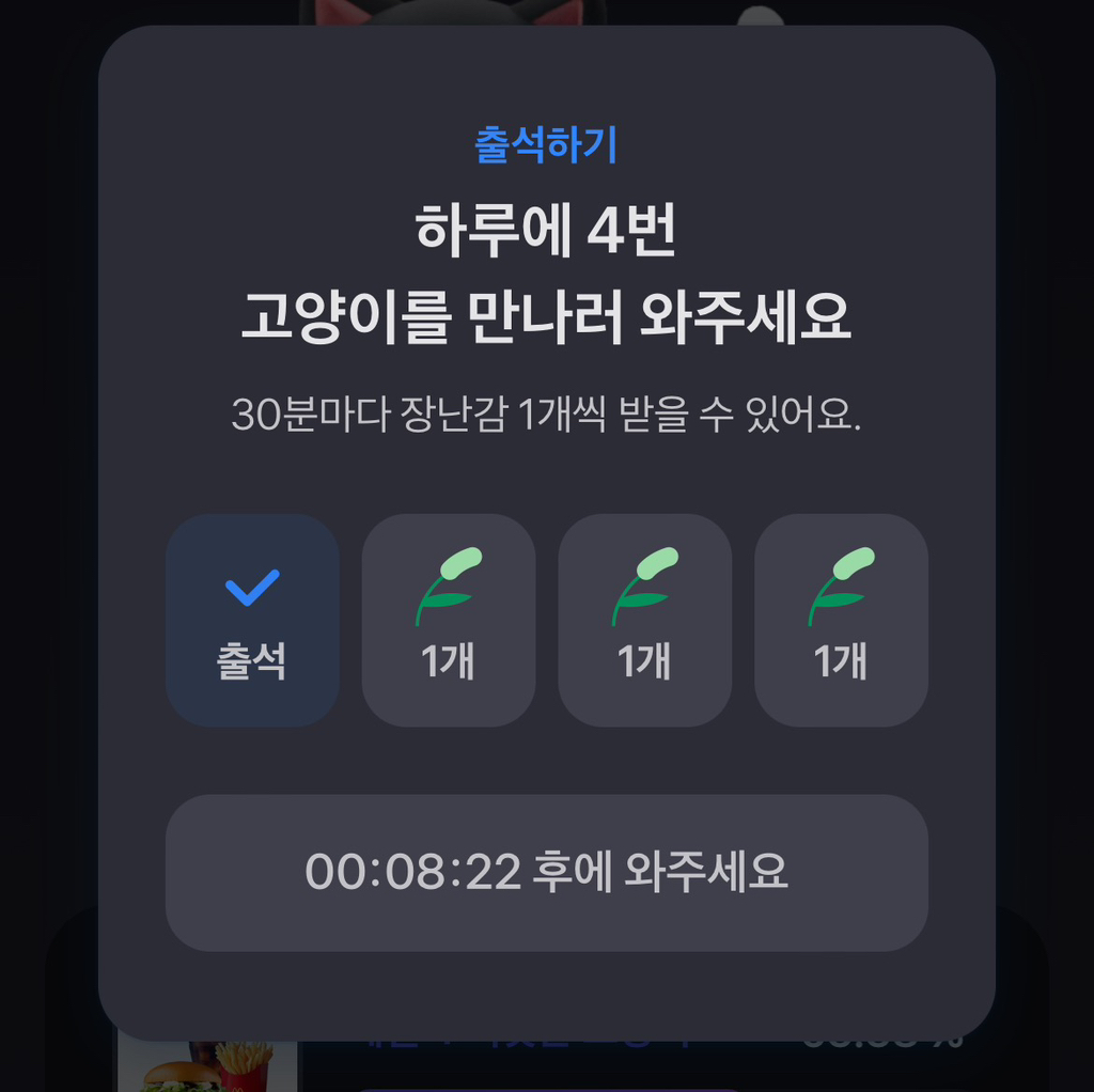 출석하기 누르면 놀아주기 장난감 1개씩 줘
