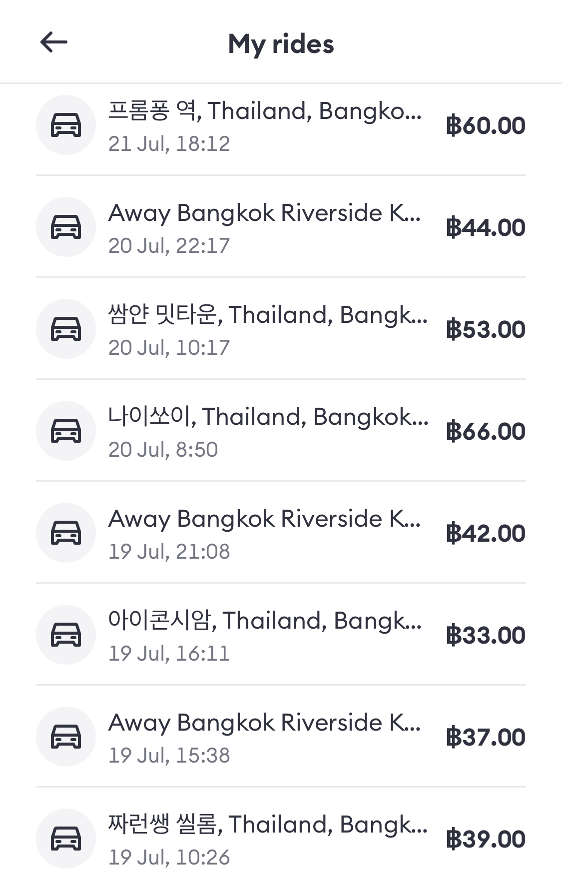 - 볼트 잡으면 영어 못하는 기사들 꽤 있음 (채팅은 자동 변역 기능 있는데 전화로는 태국어 와다다 뱉어서 당황스러움...)