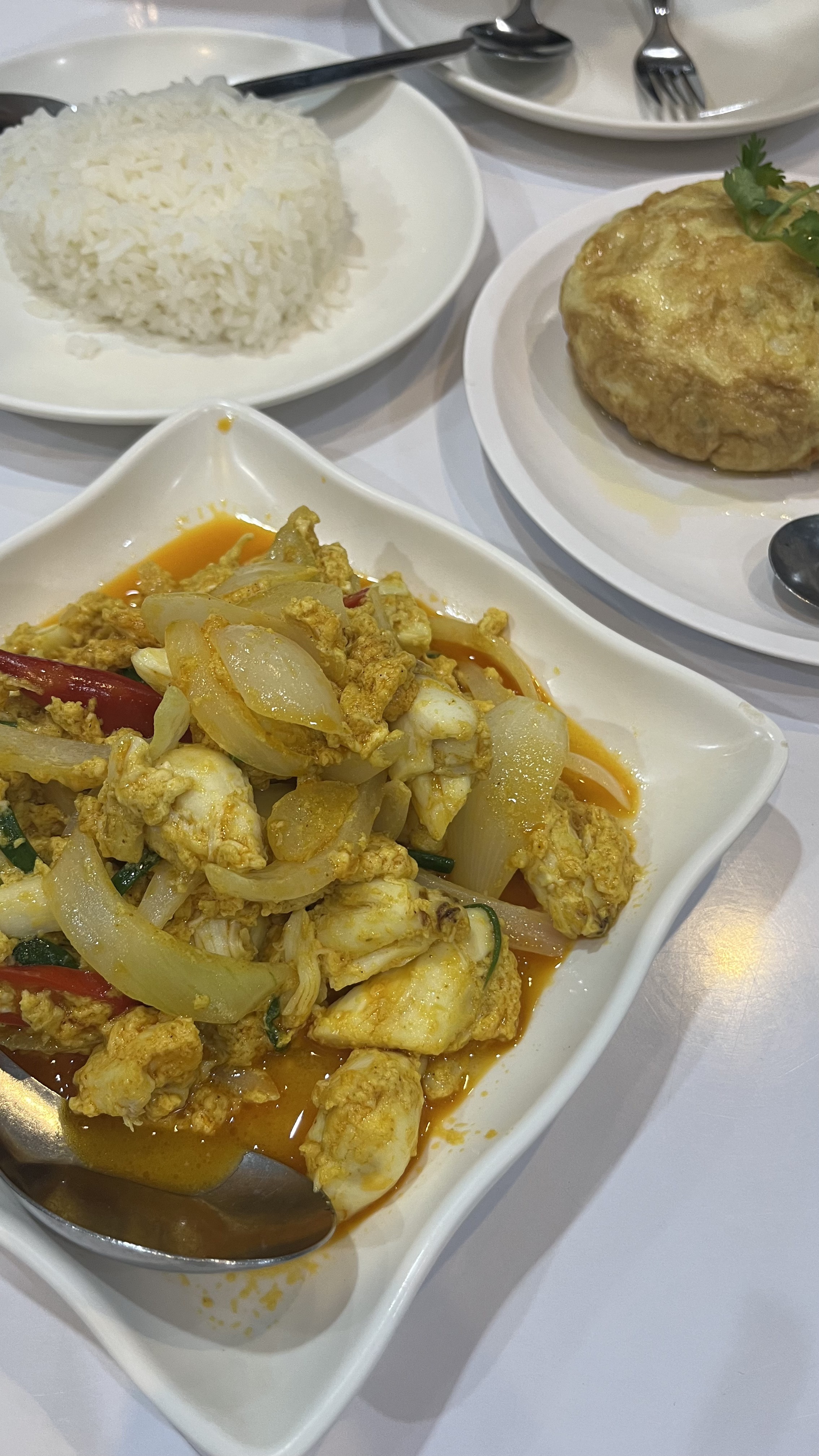뿌팟퐁커리 + 오믈렛 (새우) + 밥 + 타이티