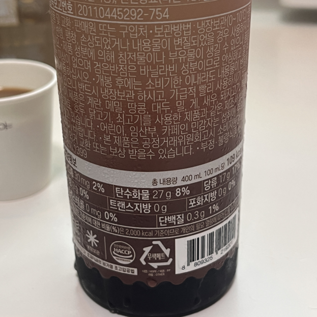 한 병에 400ml라서 우유 150ml 정도에 원액 50ml 씩 타 먹으면 한 8잔 정도 됨
