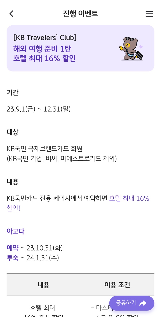 요 혜택은 KB PAY 트래블러스 멤버쉽 기준이야!!