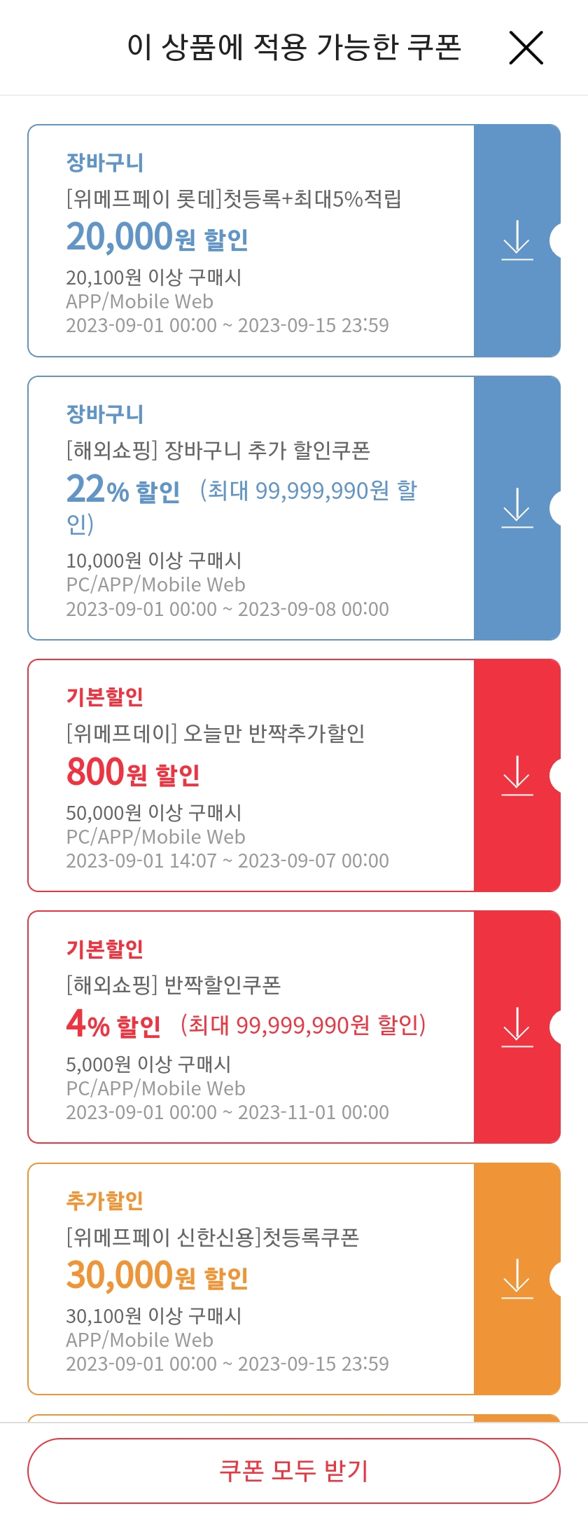 쿠폰 몽땅 다 다운로드하면 웬만해서 5만 원대 나오는 듯.