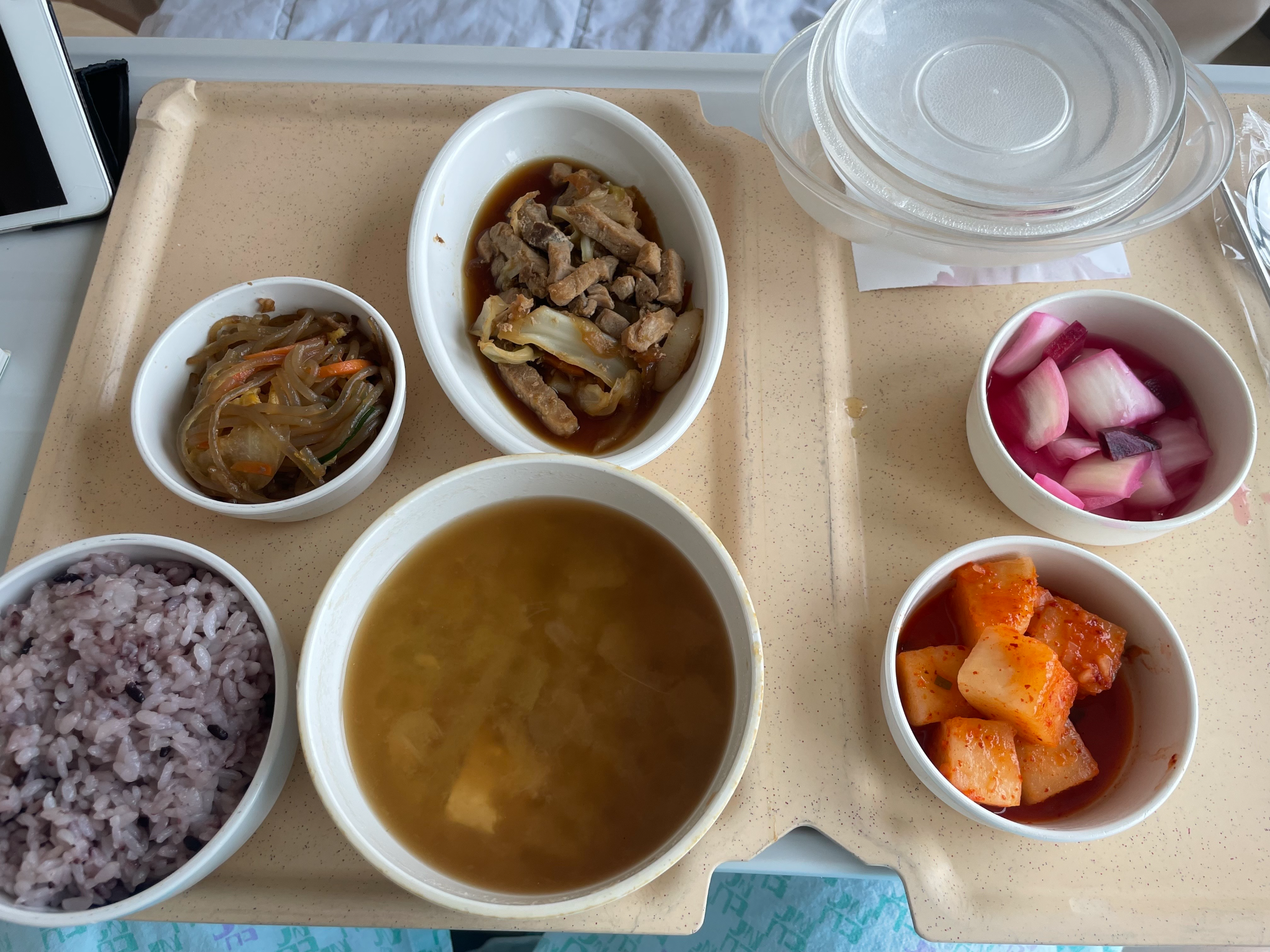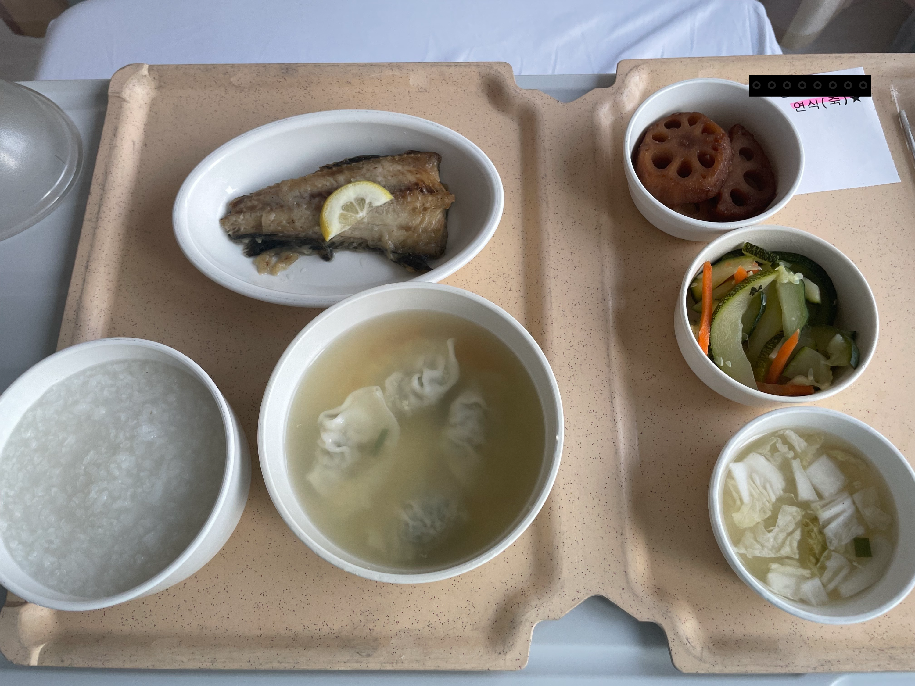퇴원날인 토요일 아침부터는 반찬 추가된 식단 나옴! 얼마나 행복하던지..