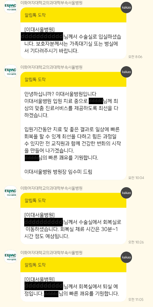 오전 10시에 병원에서 3인실 배정됐다고 카톡 왔어.