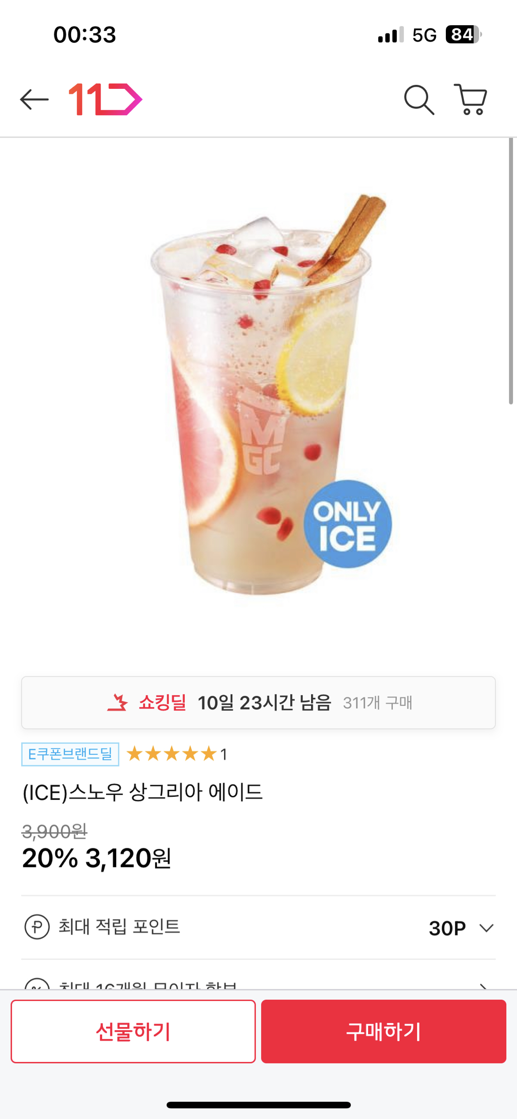 메가커피 샹그리아 에이드 3,120원!!