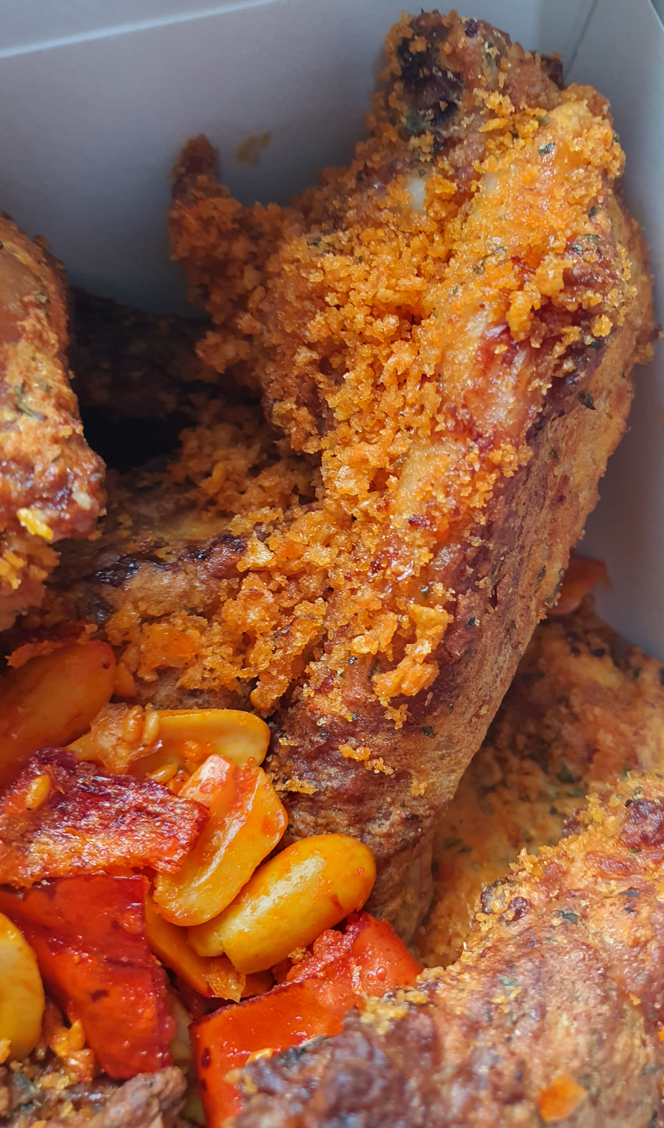 그래서 이렇게 치킨에는 애매하게 달라붙어있고