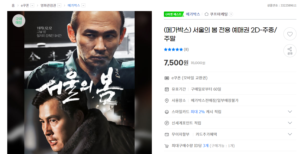 지마켓에서 서울의봄 전용예매권 7500원에 팔아