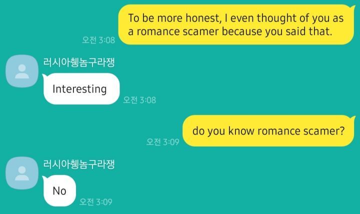 엄청 스압으로 썻는데 그게 로맨스 스캠이라고 엄청 화내더라고...