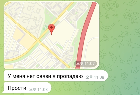 나중에 텔레그램에서 자기 위치를 전달했었어.