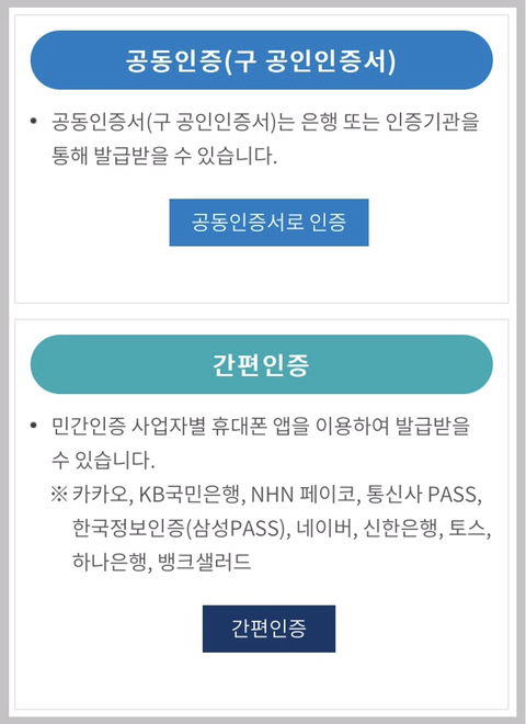 각각 신청방법이 조금씩 다르지만 큰 틀은