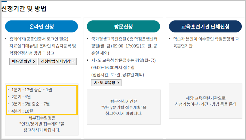 1년에 4번, 학습자등록과 함께 진행되고 있어