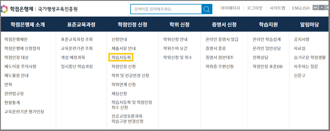 학점은행제 홈페이지 > 로그인 > 학습자등록