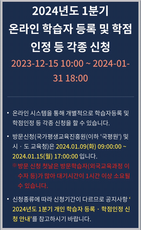 독학사 등 학점이 생기면 그 때 등록하면 돼