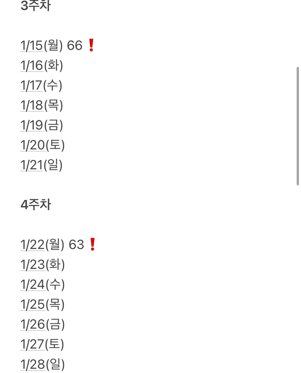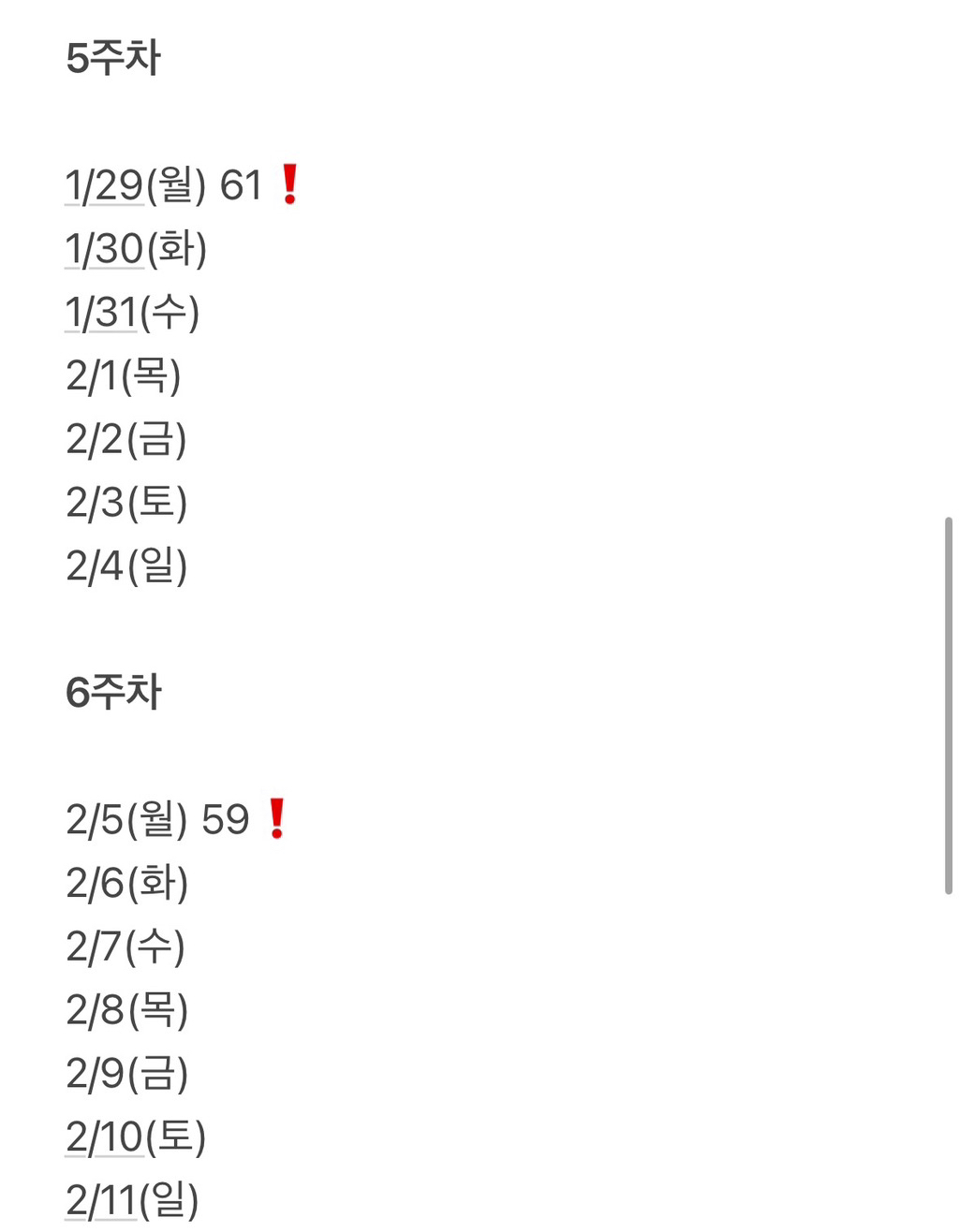 4주, 6주, 8주 이런 식으로 주 단위로 잡으라는거야