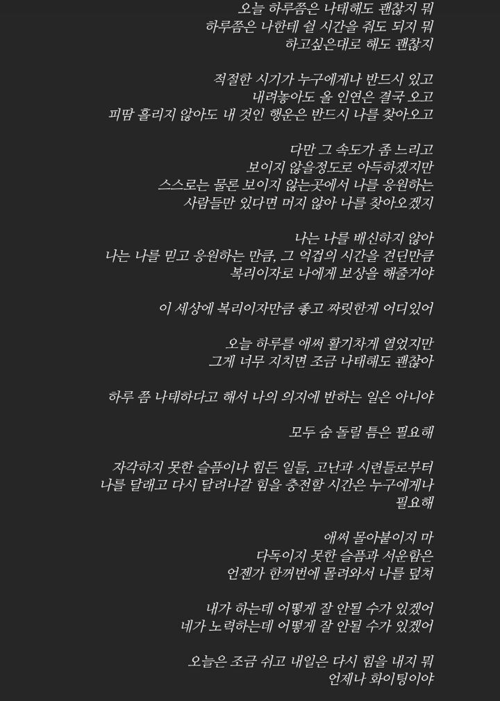[짤털]여시는 할 수 있다! 잘 할 거다! 파이팅! (자기관리 관련 짤 50장) 작성자응딩이댄스왕|작성시간24.01.22|조회수13,015 목록 댓글 37 글자크기 작게가 글자크기 크게가 출처 : 여성시대 응딩이댄스왕내가 여시 위해서 다 모아왔어이거 보고 자극 받고! 나아가자!여시는 할 수 있다! 파이팅! 다음검색 현재 게시글 추가 기능 열기 북마크 공유하기 신고 센터로 신고 댓글 댓글 37 댓글쓰기 답글쓰기 댓글 리스트 작성자천리사 | 작성시간 24.01.29 이런 거 너무 좋아 ㅎㅎㅎ 작성자new year new me | 작성시간 24.02.17 고마워🫶🫶🫶 작성자kanginleeoficial(PSG) | 작성시간 24.02.19 참 좋다 고마워! 작성자로또1등강쥐 | 작성시간 24.06.20 너무좋다 고마워💚 작성자가을조아조아 | 작성시간 25.04.09 새 마지막 울컥나네 ㅠ..고마워.. 댓글 전체보기