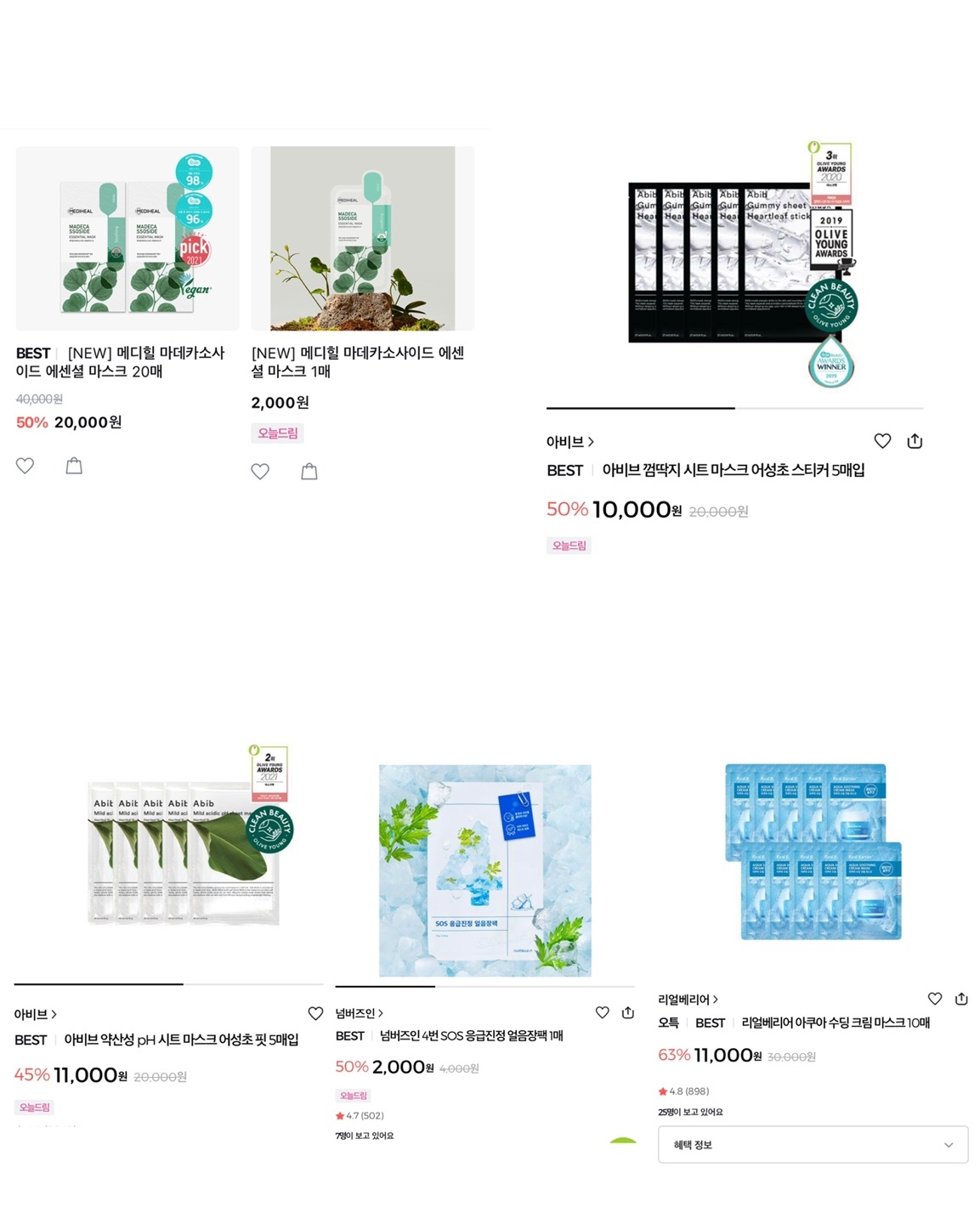 혹시나 올영에 여기 없는 팩중 또 좋은 팩 있으면 ㅊㅊ 해주라..ㅎ