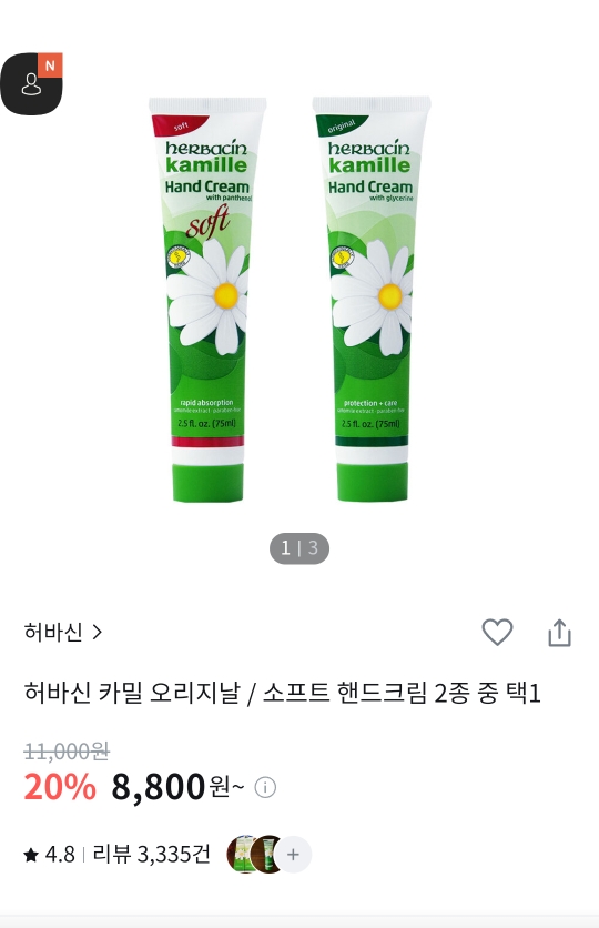 3. 허바신 카밀 핸드크림