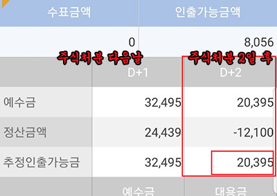 물론, 예수금에는 즉각즉각 실시간으로 반영되어 주식거래시에는 지장이 없지만
