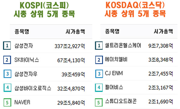 시총상위종목이 흔들리면 전체 주식시장인 코스피와 코스닥도 흔들립니다.