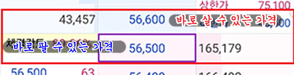 56,500원에 매도신청하면 바로 거래 됩니다.