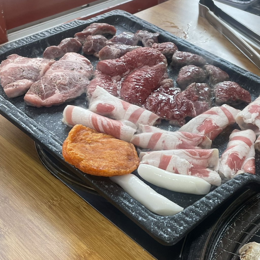 조개+소고기+돼지고기 다 먹을수있는걸로 시켰는데 생각보다 많이 못먹었어.. 차돌박이 말고는 고기들이 다 질기고.. 많이 못먹겠더라